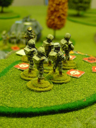 A final view of the longest firefight of the battle, between the five survivors of the FSE rifle squad that disembarked into an attack on the clifftop NI HAMR team, and the dedicated NI HAMR gunner whose teammates lay around him.