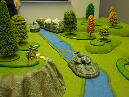 A view up the river overlooking the NI squad that just disabled the FSE Truck in the background.