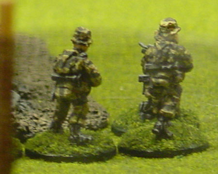 Gurkha rifle section advances through a ruined building. Closeup showing photo-adaptive fatigues in Jungle Camo pattern, "light infantry" packs, and IAVR rockets.